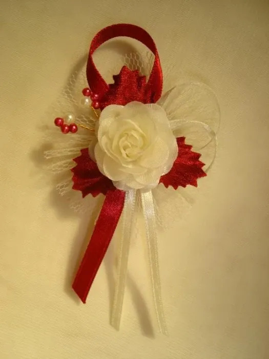1" Bokréta, kitűző ekrü-bordó 027.