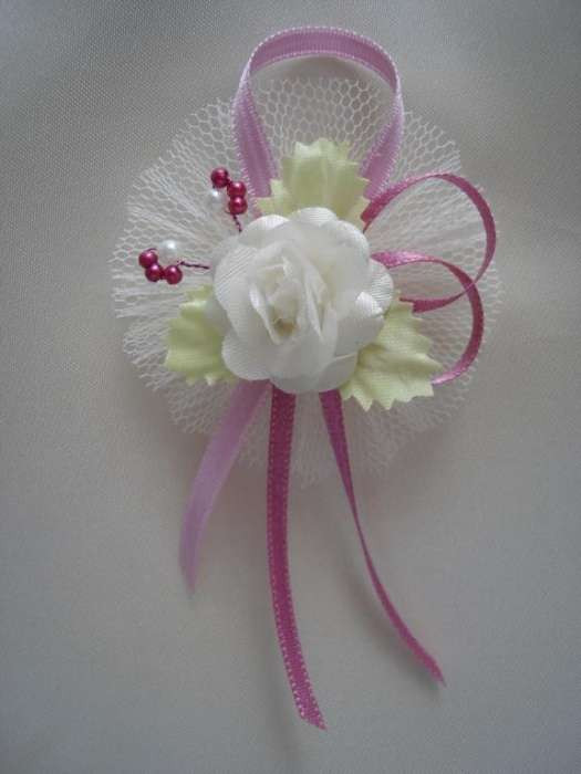 1" Bokréta, kitűző ekrü-mályva-rózsaszín-zöld 031.