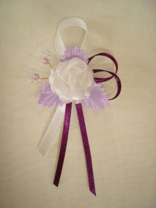1" Bokréta, kitűző fehér-lila-padlizsán