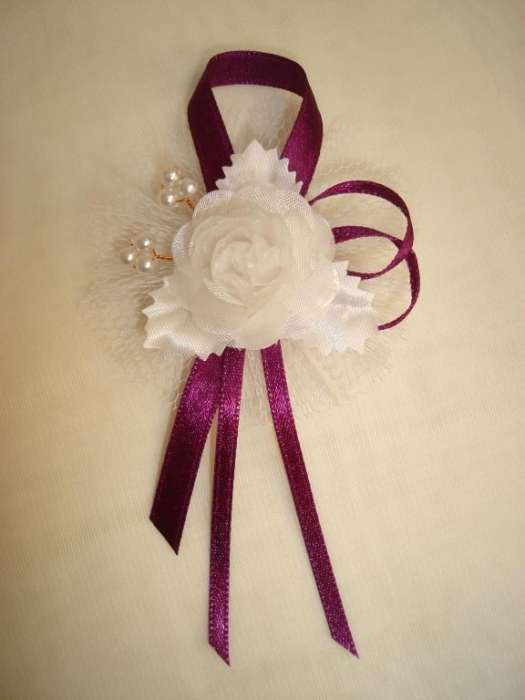 1" Bokréta, kitűző fehér-padlizsán 079.