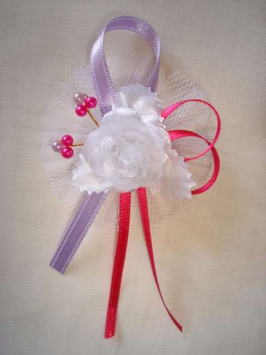 1" Bokréta, kitűző fehér-pink-lila