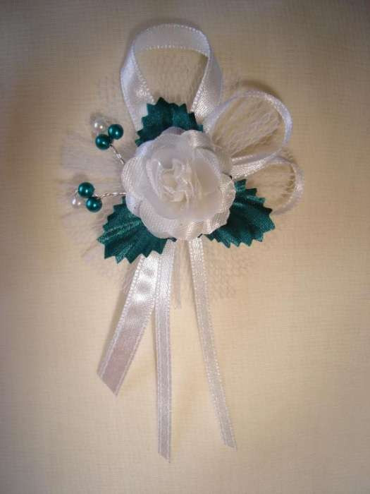 1" Bokréta, kitűző fehér-söt.zöld 036.