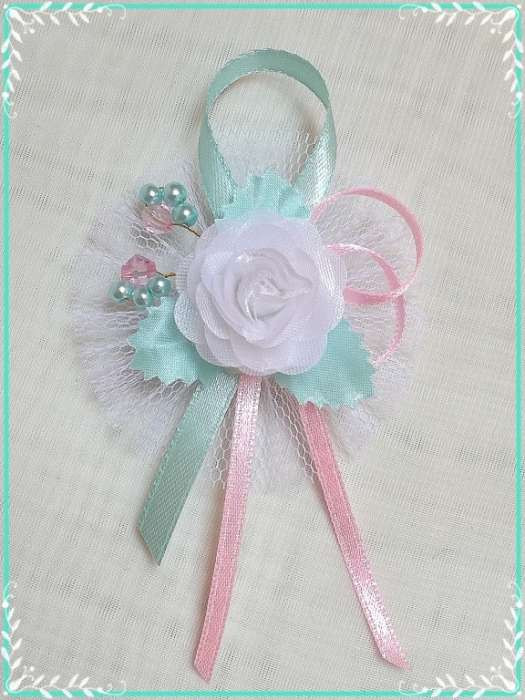 1" Bokréta, kitűző menta-rózsaszín-fehér 210.