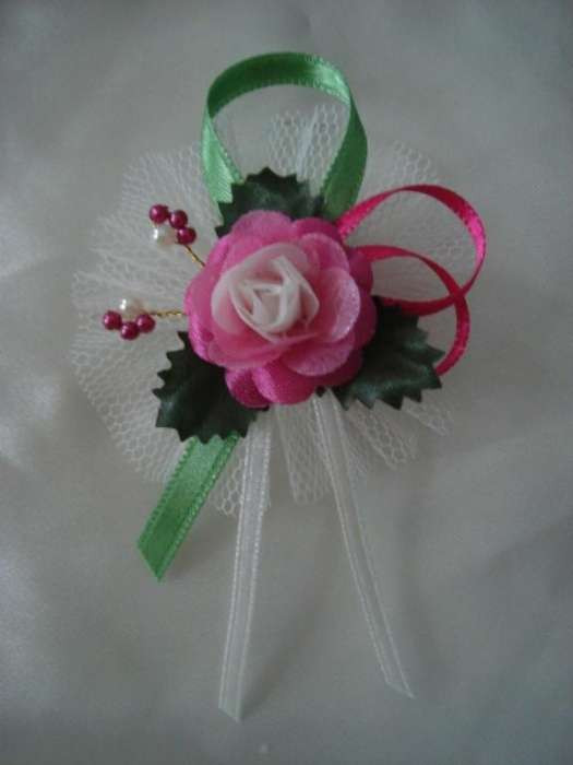 1" Bokréta, kitűző pink-ekrü-zöld 074.