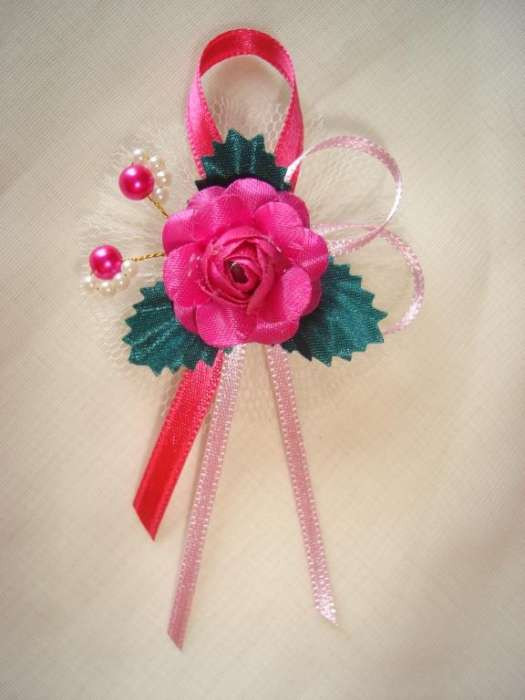 1" Bokréta, kitűző pink-rózsaszín-zöld 019.