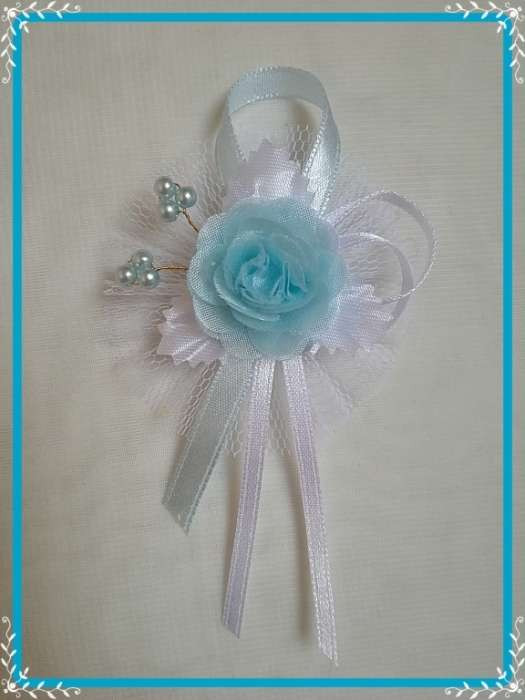 1" Bokréta, kitűző világoskék-fehér