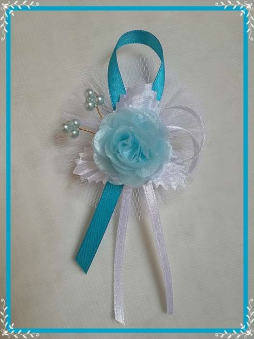 1" Bokréta, kitűző világoskék-fehér-türkiz 213.