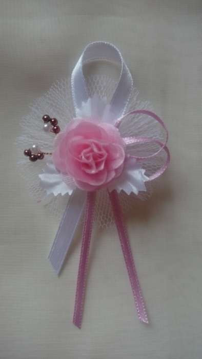 1" bokréta, kitűző rózsaszín-fehér-csoki-barna gyönggyel B200.