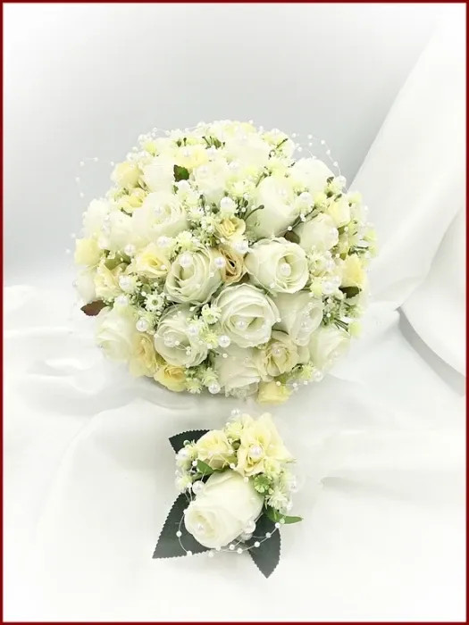 25 szálas fehér-ekrü rózsás örök-csokor + kitűzővel 110049. Csokor mérete: Átmérője: 24cm Magassága: 25cm Más színdíszítéssel is kérhető! Mond el milyenre szeretnéd! :) Bármely alkalomra adható!