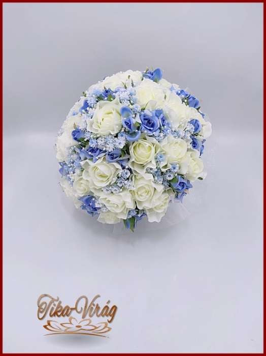 A virágok prémium minőségűek, amik hosszú távon megőrzi szépségét, nem hervad el, emlékezetes lesz az esküvő vagy egyéb fontos eseménynek. A fehér rózsa tisztaságát és a kék rózsa különleges színvilágát a szimmetrikus elrendezés.