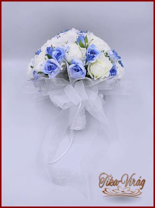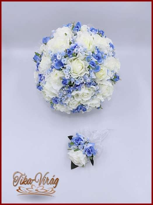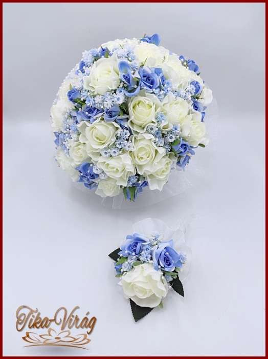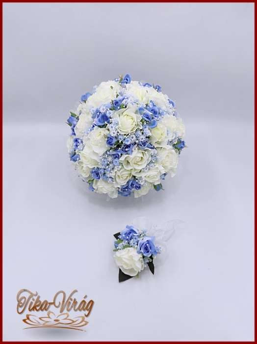A prémium minőségű virágoknak köszönhetően a csokor és a kitűző hosszú távon megőrzi szépségét, nem hervad el, így emlékezetes kiegészítője lesz az esküvőnek vagy egyéb fontos eseményeknek. A fehér rózsa tisztaságát és a kék rózsa különleges színvilágát a szimmetrikus elrendezés teszi igazán vonzóvá, ami menyasszonyi kiegészítőnek is ideális választás.