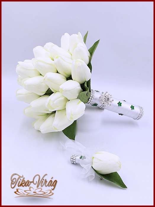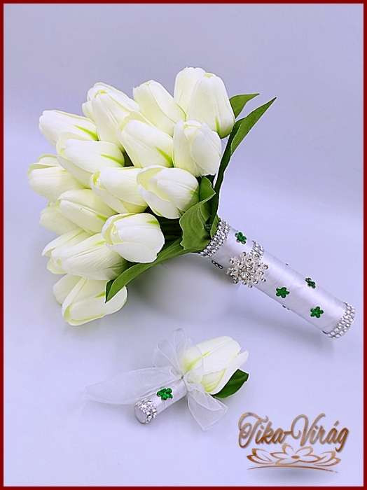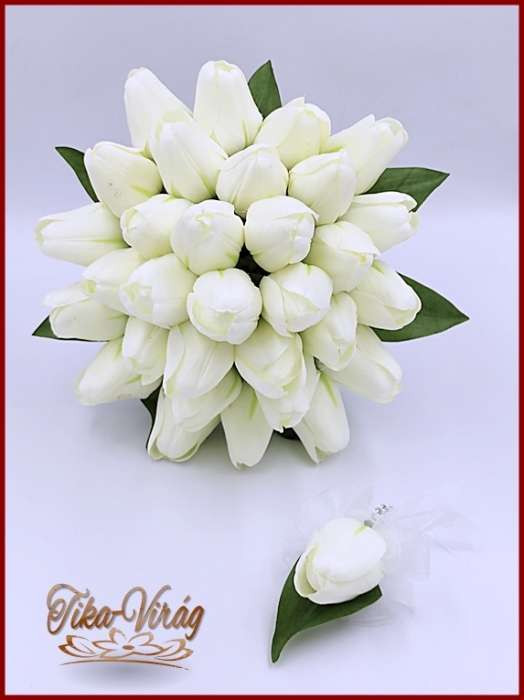29 szálas Fehér tulipán örök-csokor+ kitűzővel 224608.
