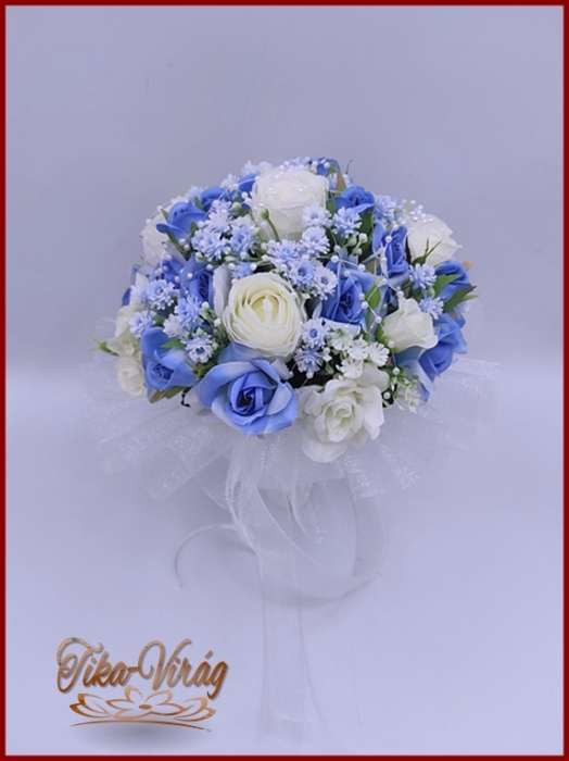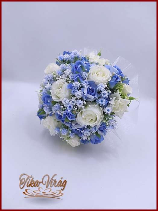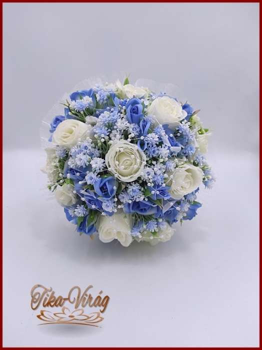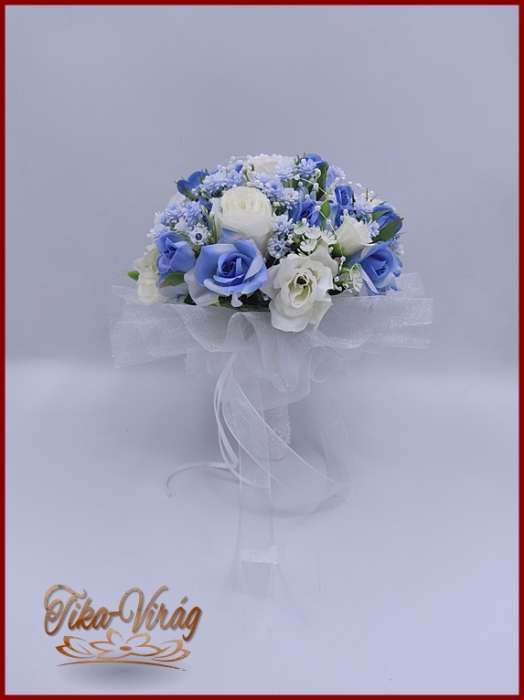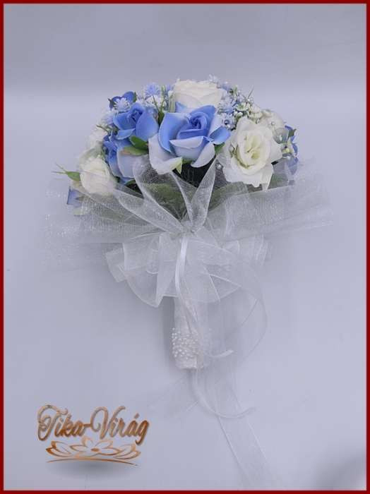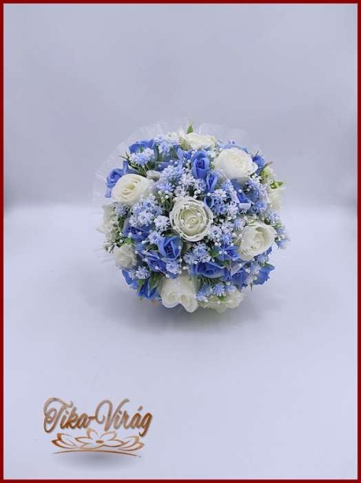 5 szál fehér rózsa - kék rózsa díszítésű örök-csokor 152935. Koszorűslány, szülőköszöntő csokor. Csokor méret: Átmérője: 22cm Magassága: 22cm Más színdíszítéssel is kérhető! Mond el milyenre szeretnéd! :)
