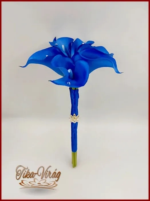 6 virágos Király-kék kálás örök-csokor, dobó-, koszorús-, szülőköszöntő-csokor 180706.