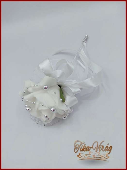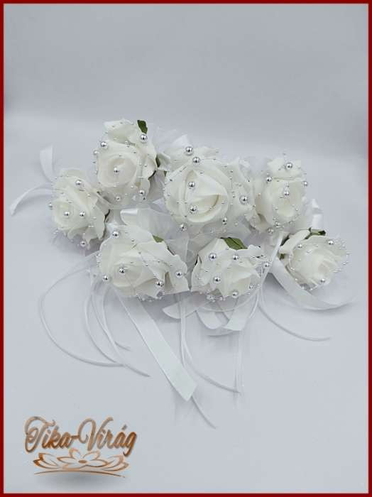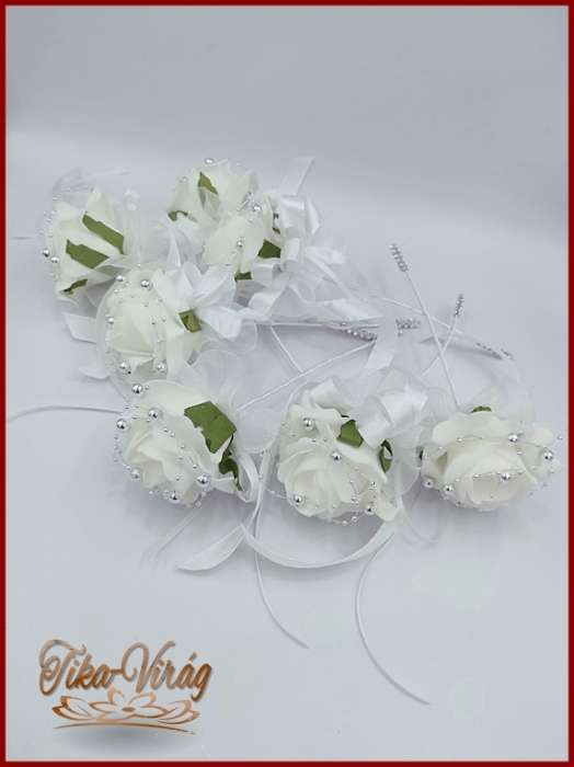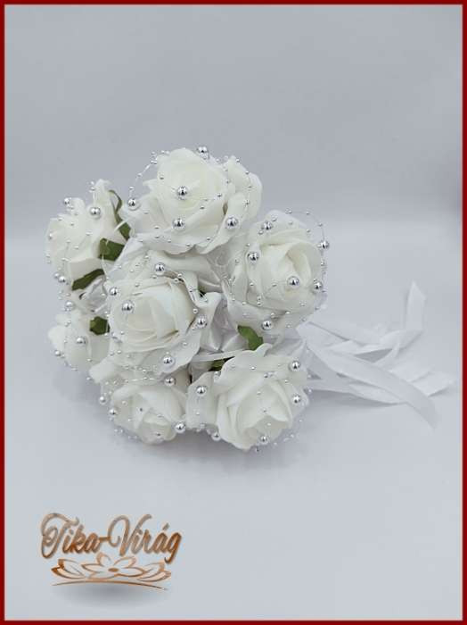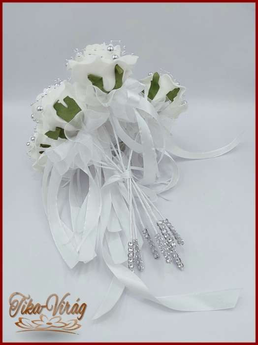 7 virágos 7 felé-szétrepülő dobócsokor fehér-rózsákból ezüst díszítéssel 192212.