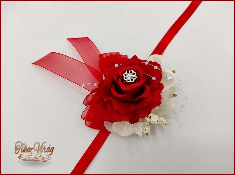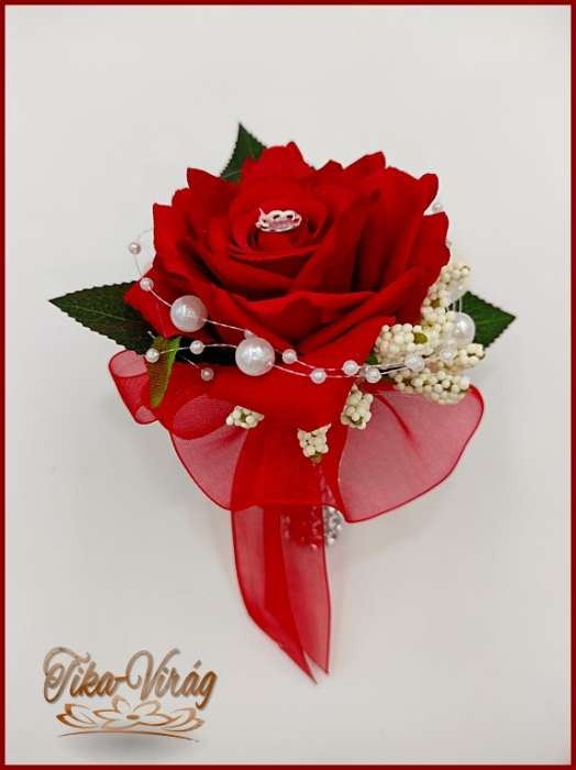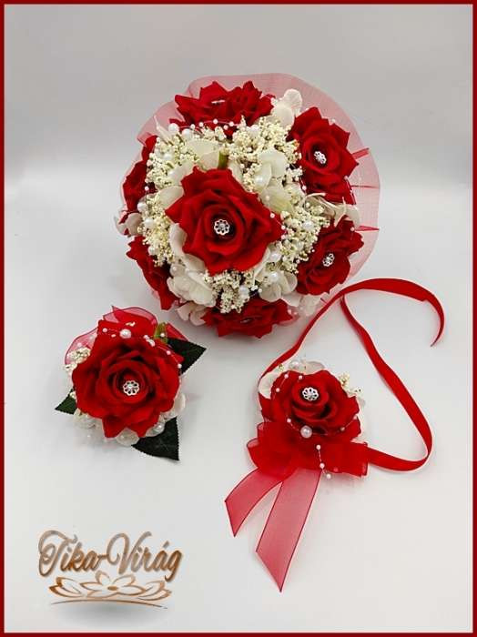 7 virágos Piros rózsa-örök csokor + kitűzővel + csuklódísszel 110502.