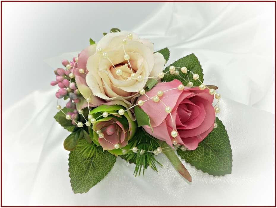 Antik-rózsaszínű-rózsákból álló kitűző