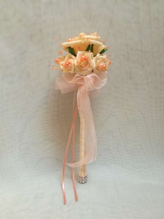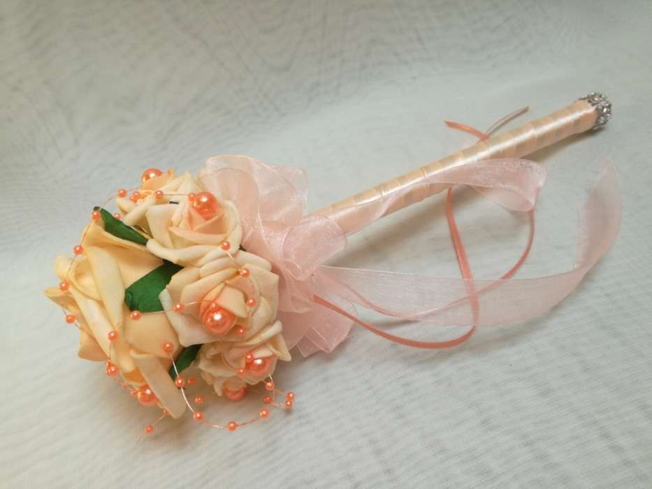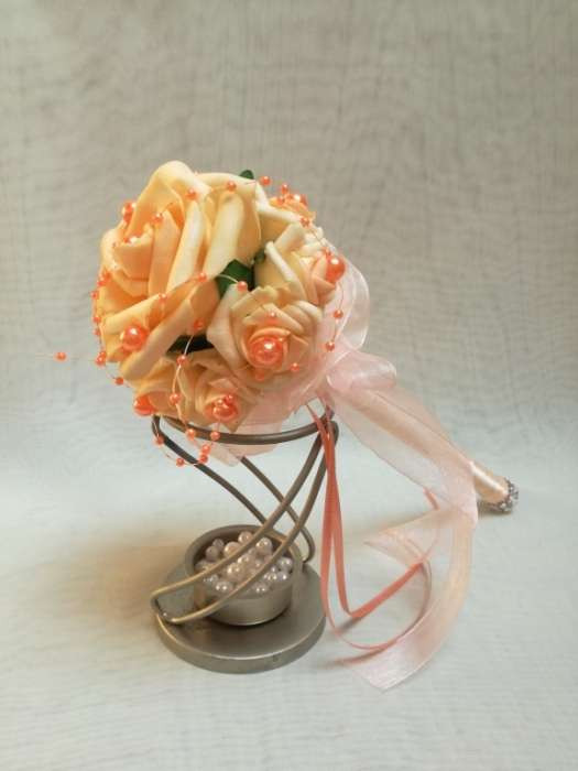 Barack dobó, koszorúslány vagy köszöntő örök-csokor 154022. Csokor hossza: 25cm átmérője: 12cm fej magassága: 8cm Más szín-összeállításban is kérhető!