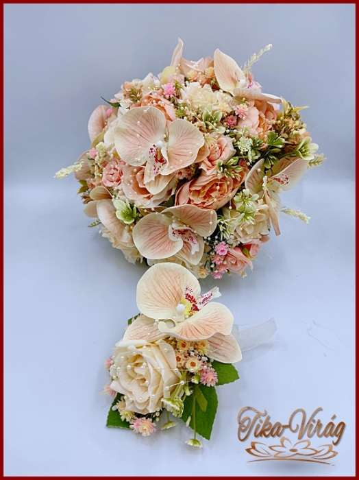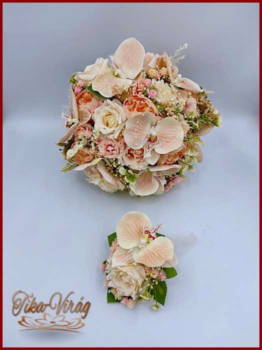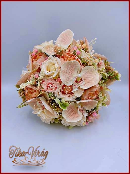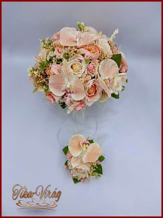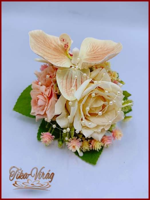 Barack-krém orchideás-rózsa örök-csokor+ kitűzővel 124336. Csokor mérete: Átmérője: 26cm Magassága: 25cm Más színdíszítéssel is kérhető! Mond el milyenre szeretnéd! :) Bármely alkalomra adható!
