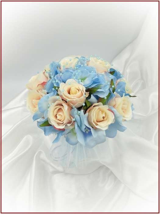 Barack rózsás-kék hortenziás Örök-csokor 12 virágos 212337_1.