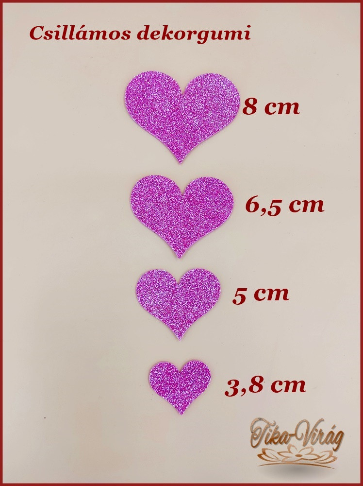 Csillámos dekorgumi szívformák – 4 méretben sok színben
