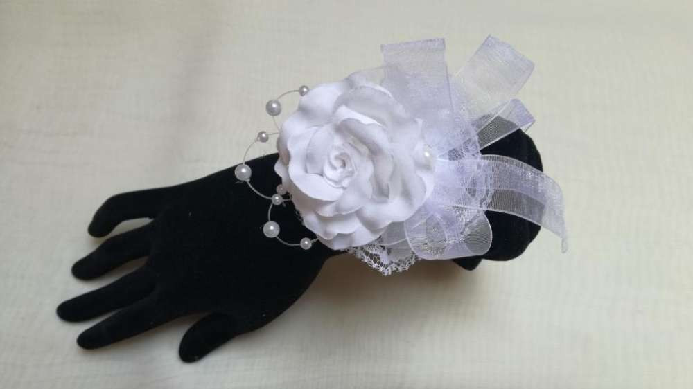 Csuklódísz fehér Rózsás csipkés gyöngyös pánttal