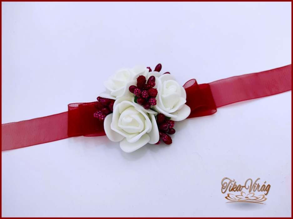 Fedezd fel ezt a gyönyörű fehér-bordó csuklódíszt, amely tökéletes választás esküvőkre, bálokra és egyéb különleges eseményekre! A csuklódísz elegáns megjelenését a prémium minőségű anyagok, valamint a bordó és fehér színek harmonikus kombinációja adja.