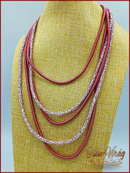 Divat-ékszer mályvás-színű, hosszú nyaklánc
