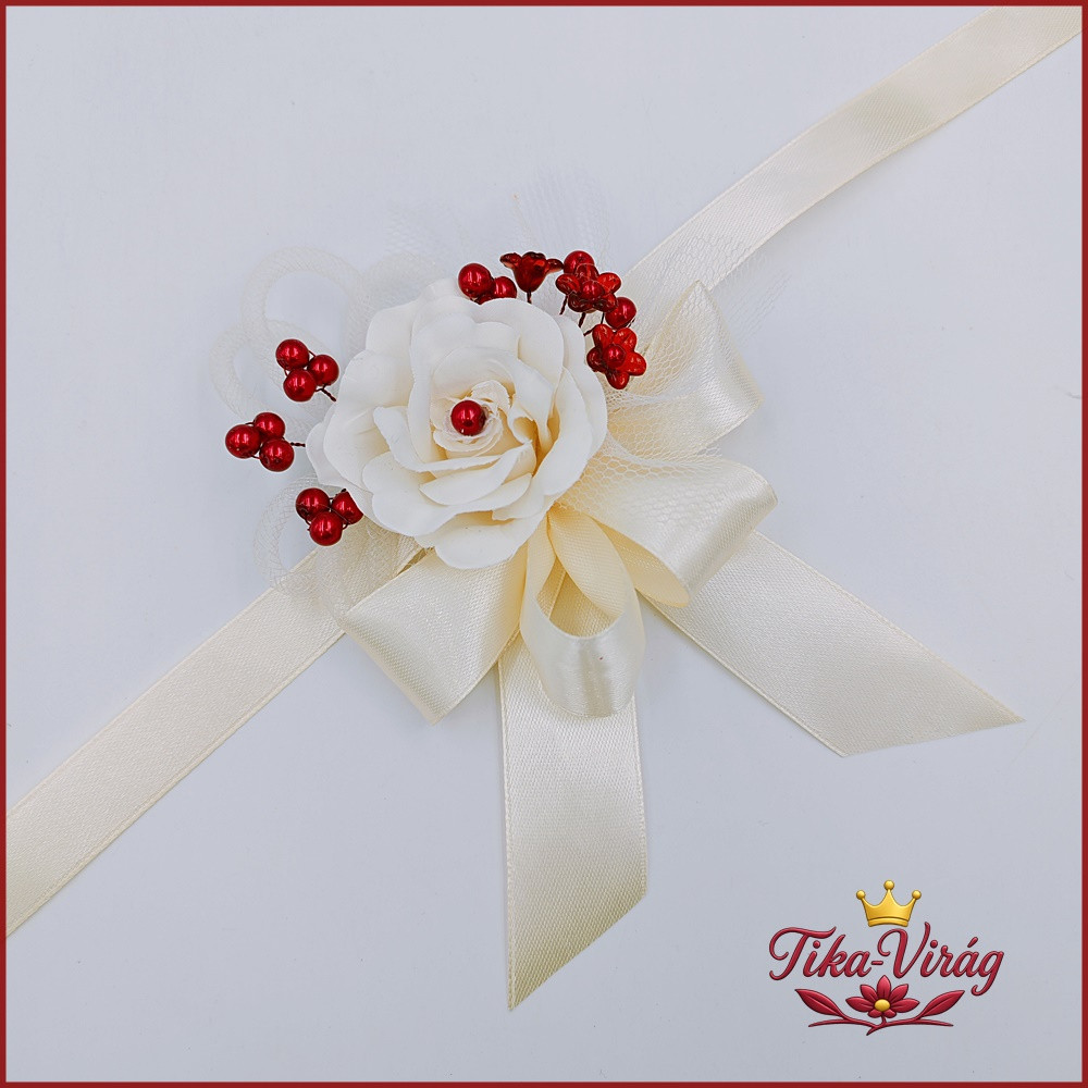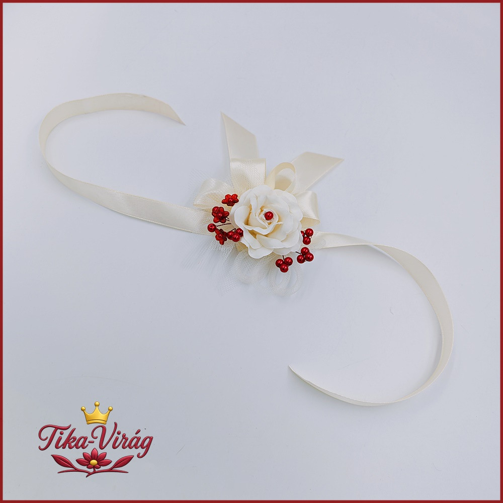 Ekrü rózsás-bordó díszítésű csuklódísz