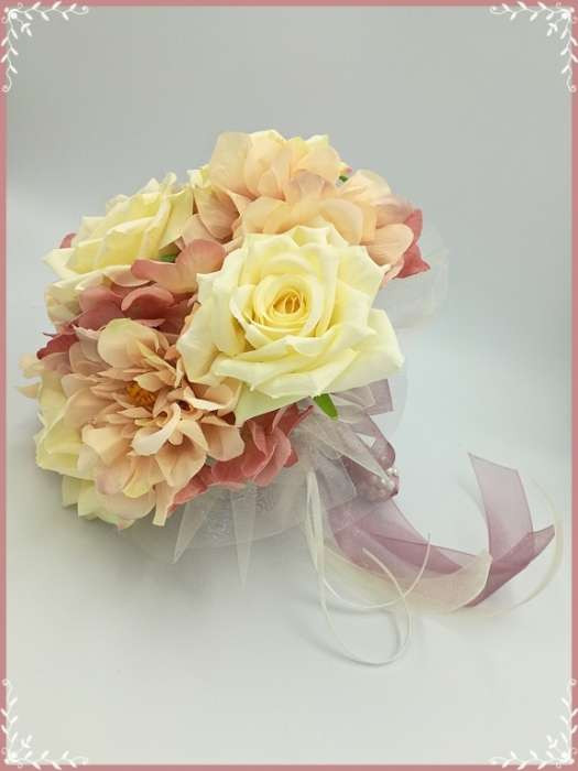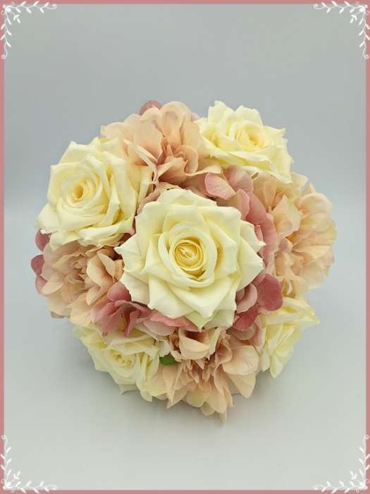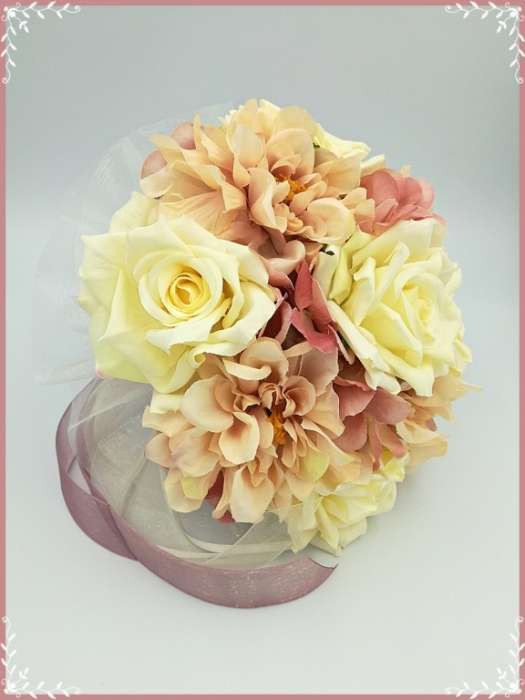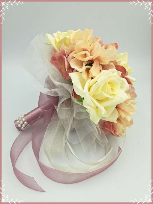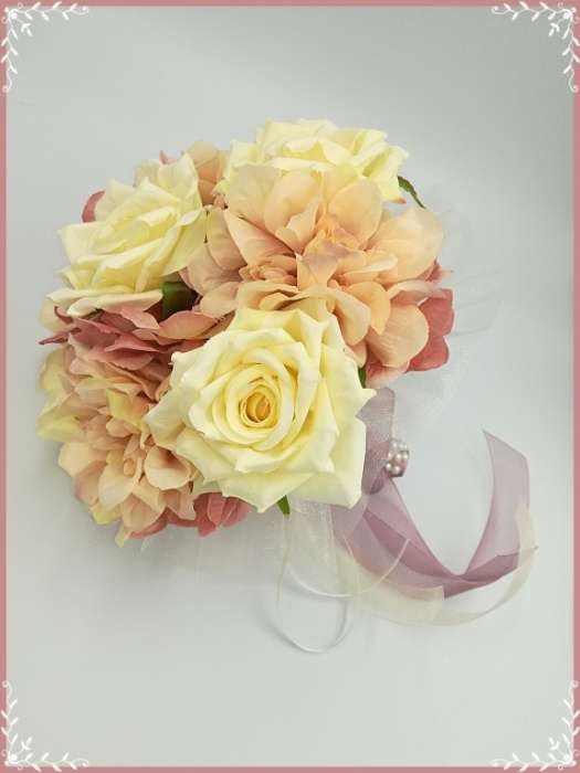 Ekrü-rózsás-mályva azáleás, hortenziás örök-csokor 142641_1. Átmérője: 20cm Magassága: 22cm Más színdíszítéssel is kérhető! Mond el milyenre szeretnéd! :) Bármely alkalomra adható!