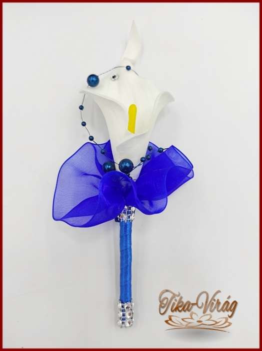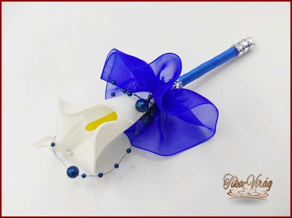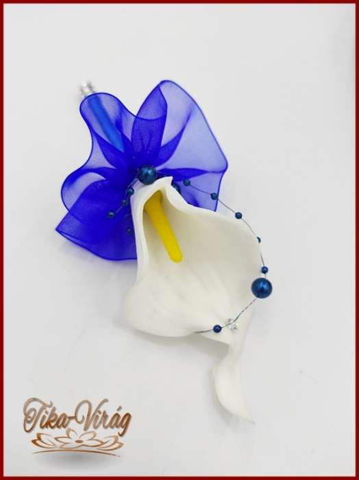 Fehér Kála-királykék díszítéssel kitűző, bokréta