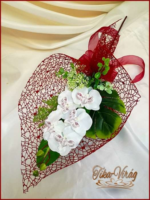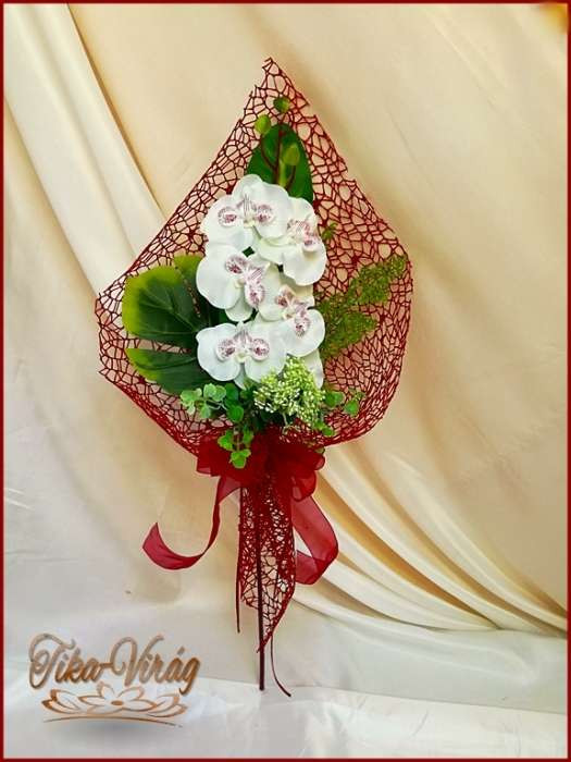 Fehér-Orchideás bordó díszítésű Szülő-köszöntő Örök-csokor 134937_1.