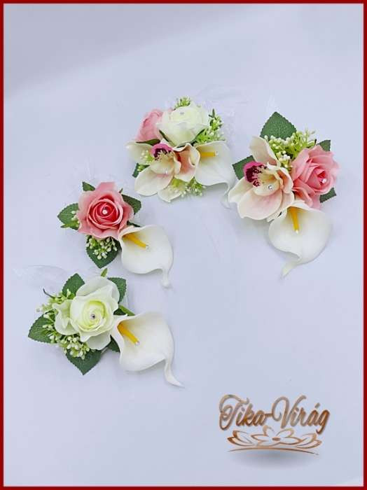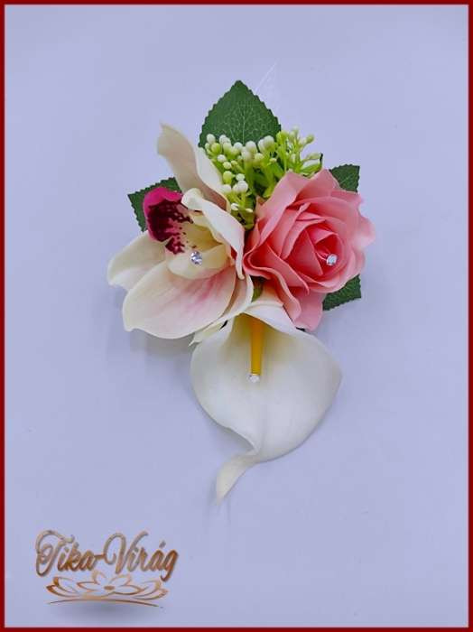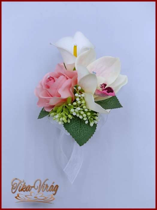 Fehér kála és rózsaszín rózsa orchideás kitűző, bokréta, 221659.
