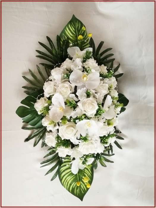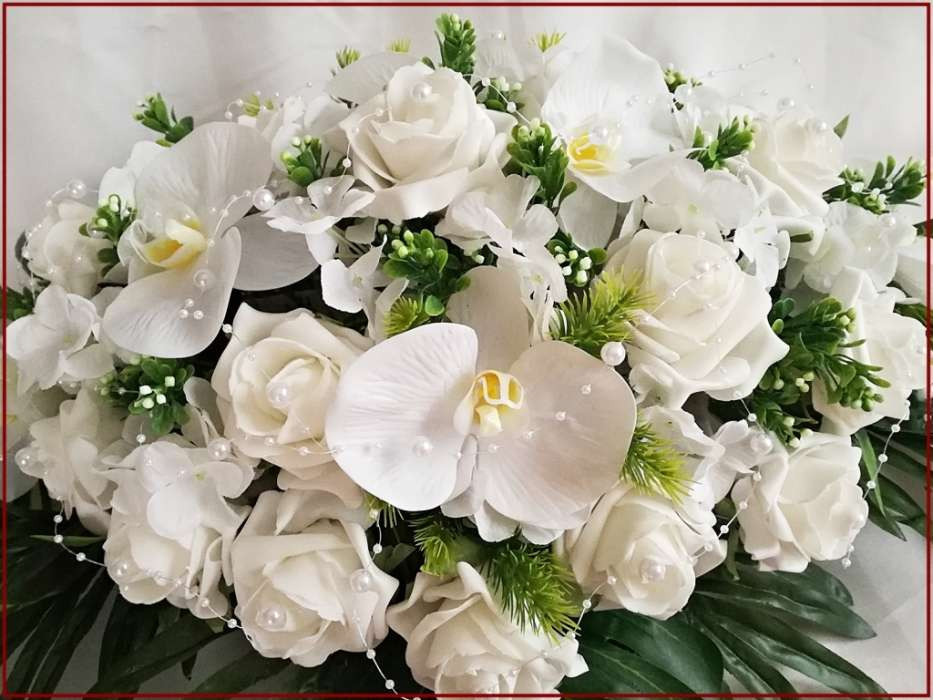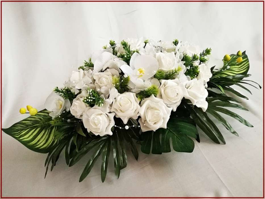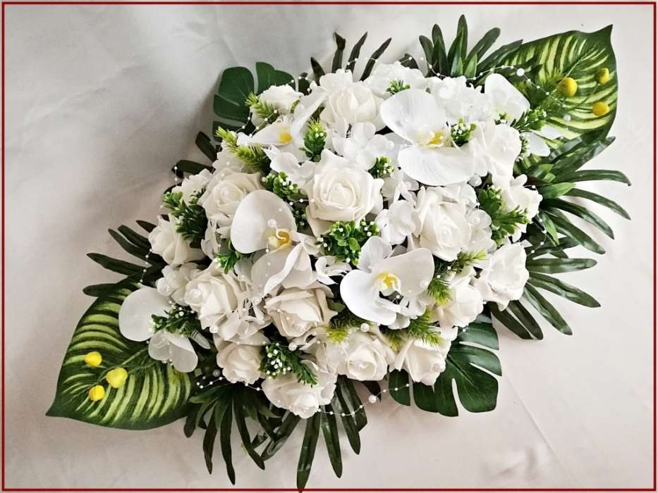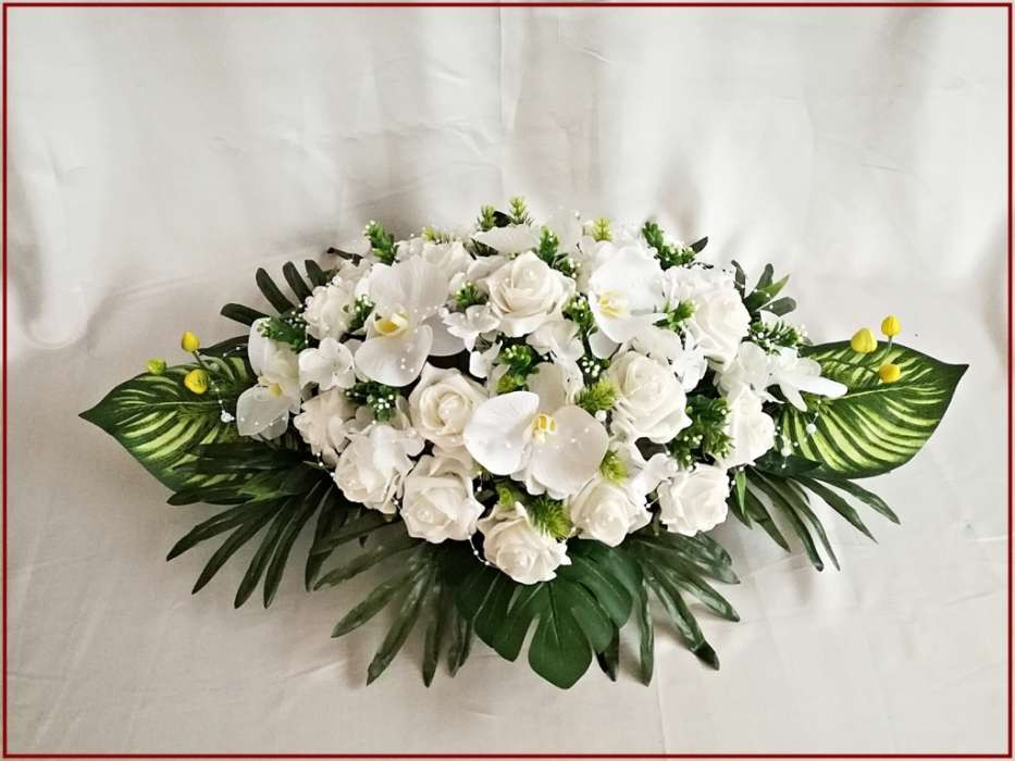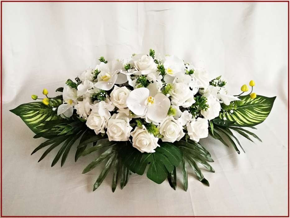 Fehér orchideás-rózsás asztaldísz 153241. Asztaldísz méretei: hossza: 73cm szélessége: 35cm magassága: 18cm Más színben is kérhető!