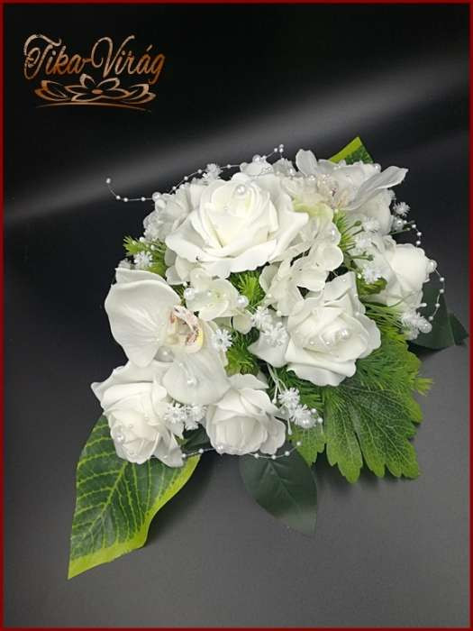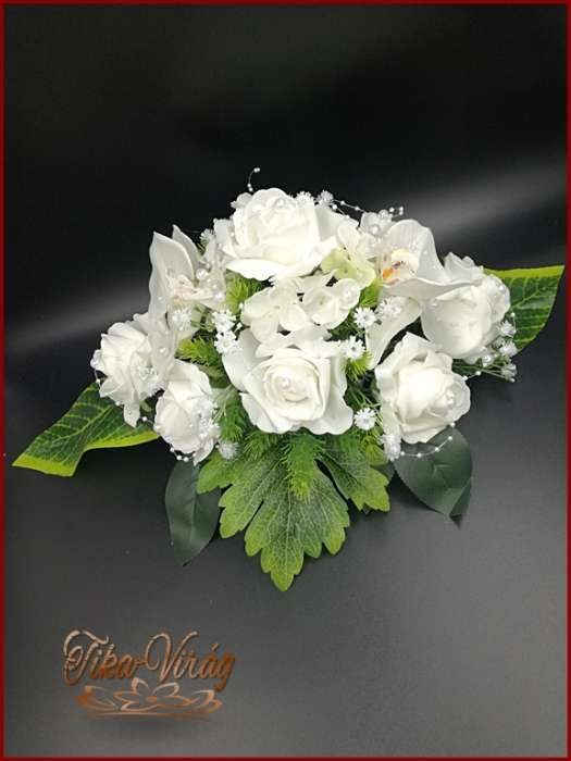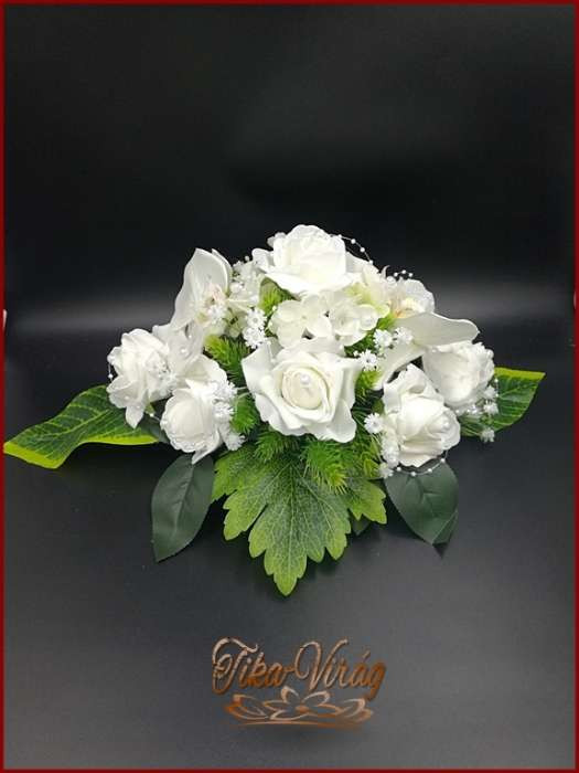 Fehér orchideás-rózsás asztaldísz 163957. Asztaldísz méretei: hossza: 35cm szélessége: 24cm magassága: 20cm Más színben is kérhető és szí-díszítésben is kapható! Mond el milyenre szeretnéd!