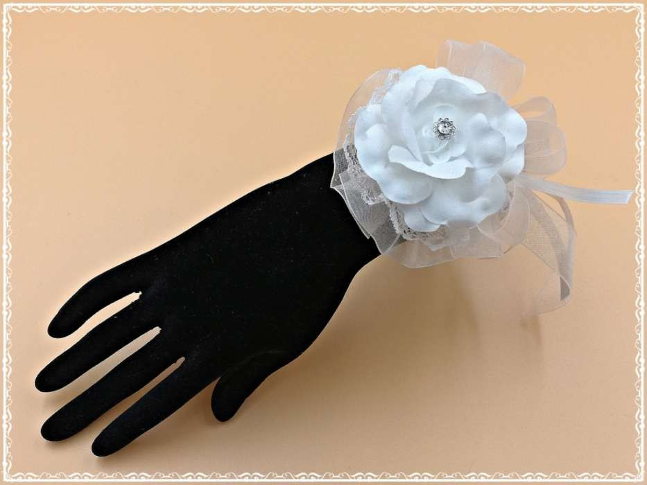 Fehér rózsás Csuklódísz Gyöngysoros-pánttal