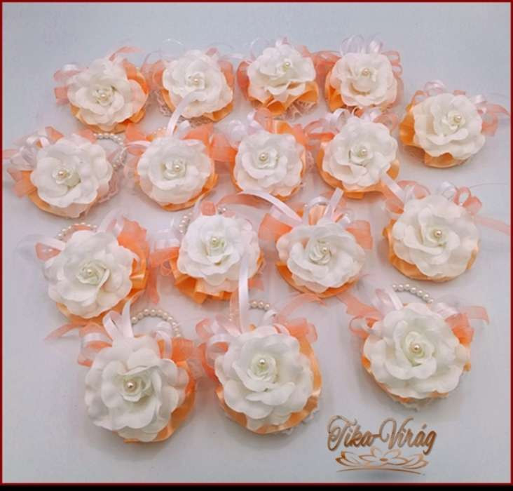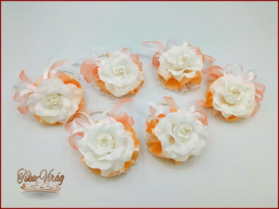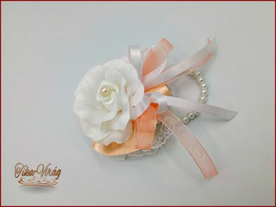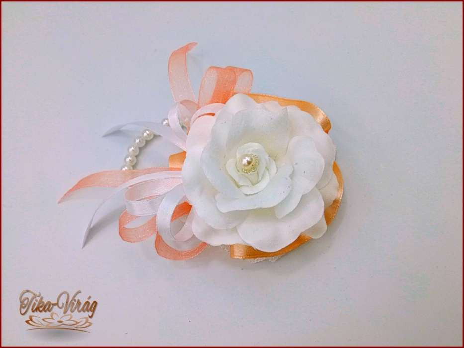 Fehér rózsás-barack szalagos gyöngyös pánttal