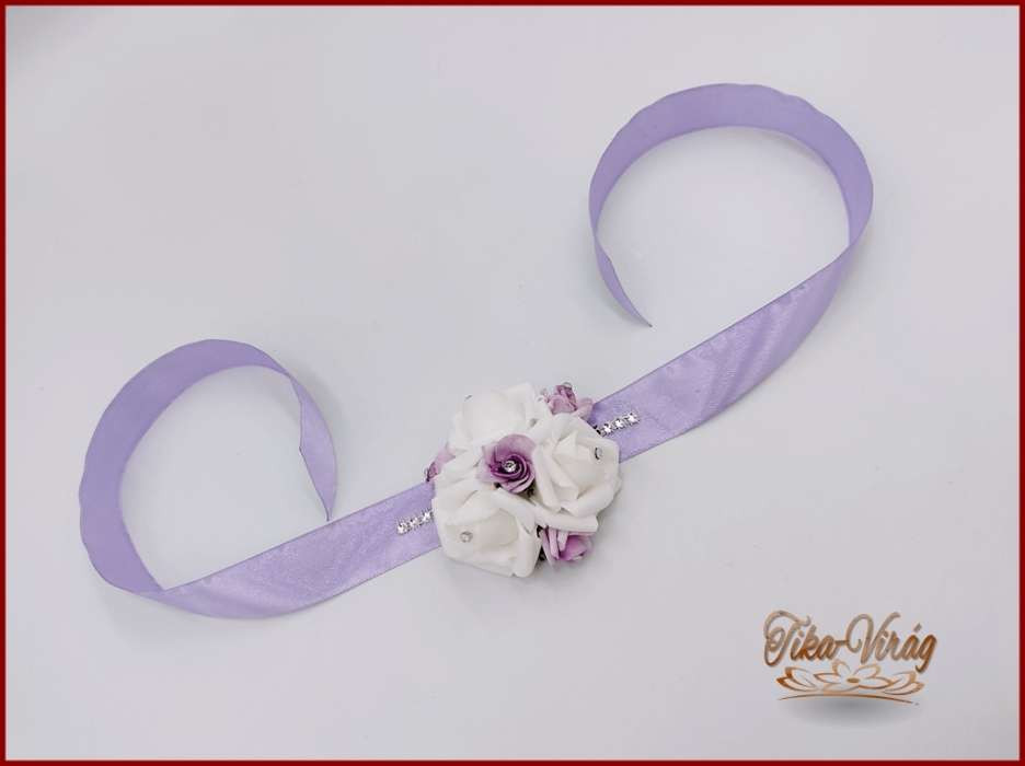 Fehér rózsás- lila díszítésű csuklódísz 215019.