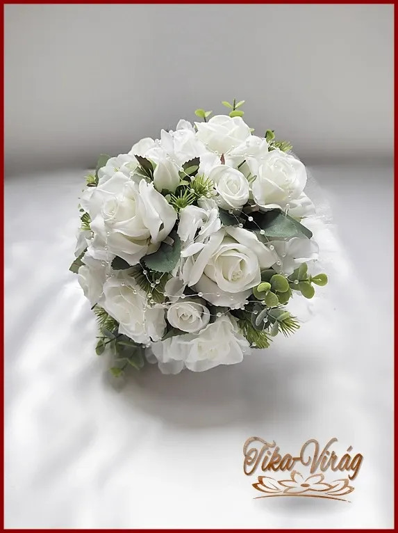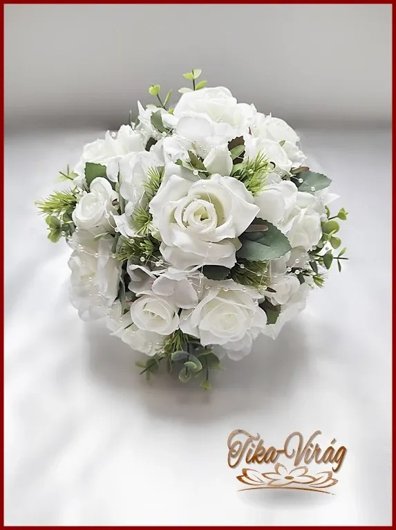 Ez a lenyűgöző fehér rózsás örökcsokor tökéletes választás esküvőkre, különleges alkalmakra vagy elegáns eseményekre. A prémium minőségű, mesterséges virágokból készült csokor nem hervad el, és sokáig megőrzi szépségét. A fehér rózsák tisztasága és eleganciája, valamint a csokor időtálló formája minden alkalomhoz illik. A csokor mérete és dizájnja ideálissá teszi arra, hogy díszítse az esküvői asztalt, vagy épp a menyasszonyi csokrot.