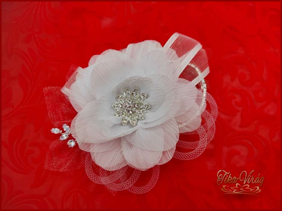 Fehér színű csuklódísz, cirkónium kövekkel díszített, strasszos karkötőn 170725.