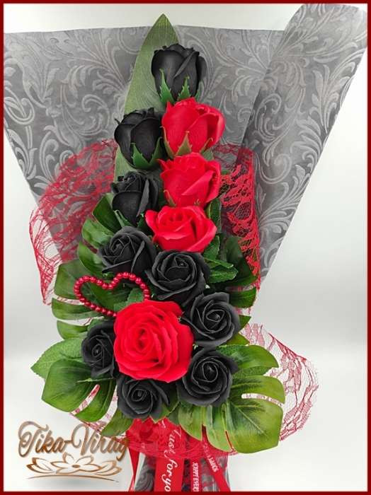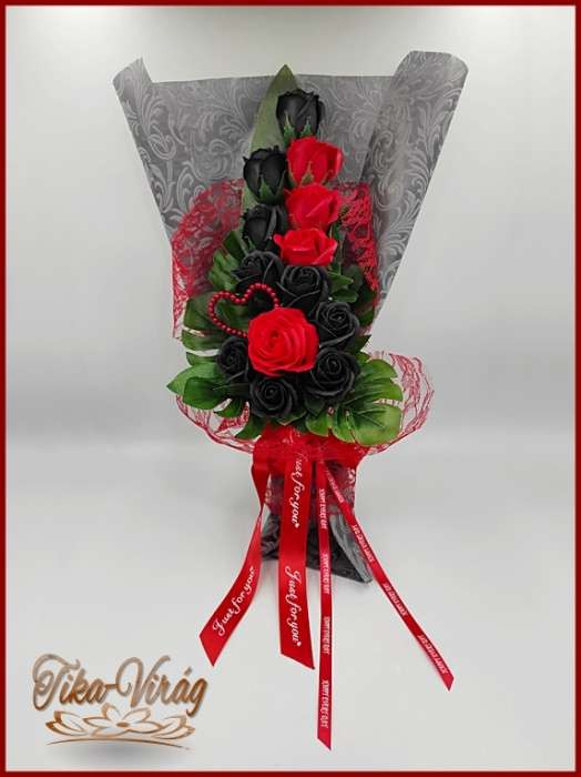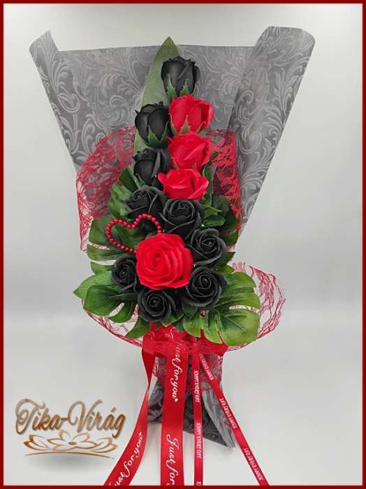 Fekete piros rózsákból álló szappanvirág örökcsokor 171541.