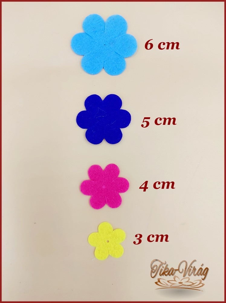 Filc virágformák – 4 méretben, 24 gyönyörű színben
