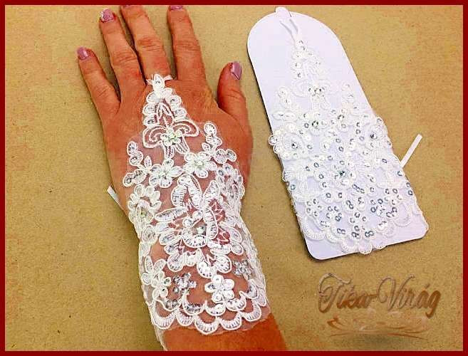 Finom csipke rövid kesztyű menyasszonyi ruhához 7357_6.