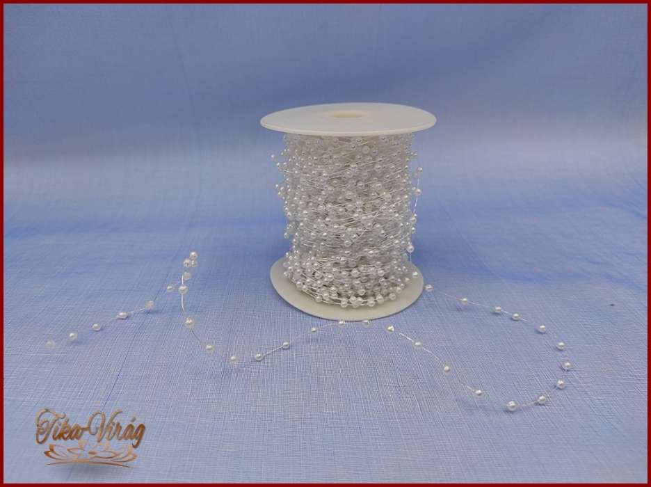 Gyöngy füzér damilon 3mm Fehér színű 1 tekercs/ 30m