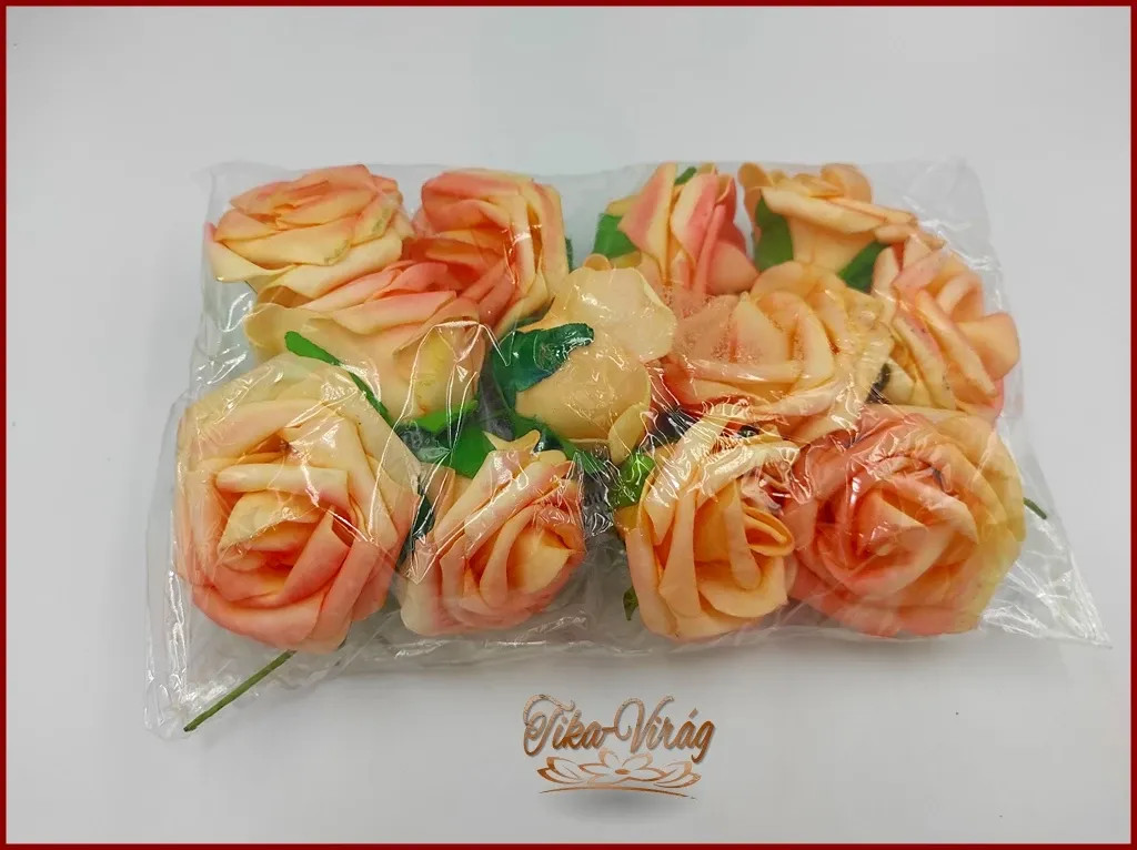 Habrózsák vagy polifon rózsák felemás narancs közepű 140402. Méretük 7-8 cm 1 csomagban 12db virág van. Az ár a csomagra értendő.
