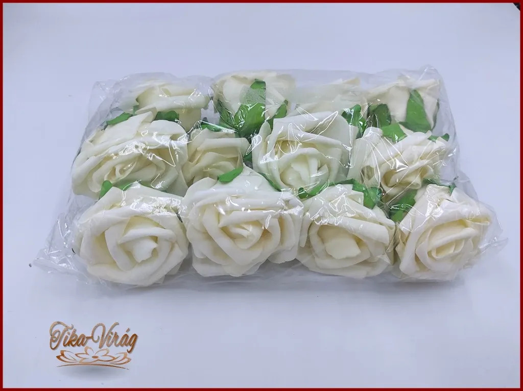 Habrózsák vagy polifon rózsák krém színű 140801. Méretük 7-8 cm 1 csomagban 12db virág van. Az ár a csomagra értendő.