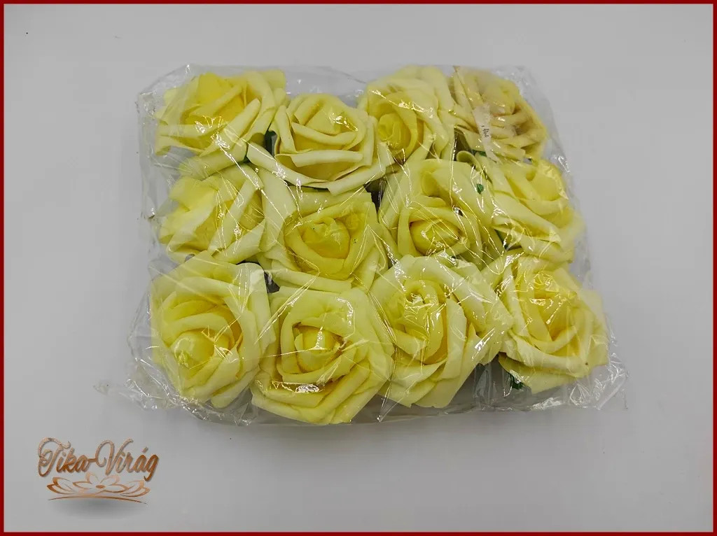 Habrózsák vagy polifon rózsák sárga 140627. Méretük 7-8 cm 1 csomagban 12db virág van. Az ár a csomagra értendő.