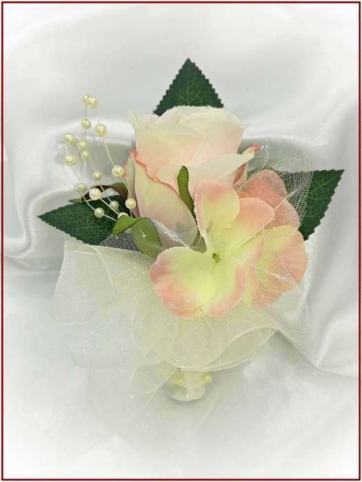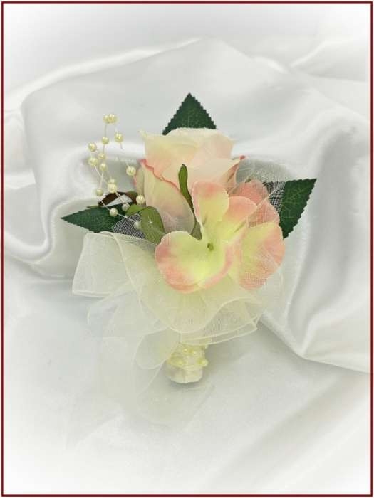 Hamvas barack 1 rózsás kitűző, bokréta