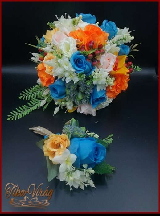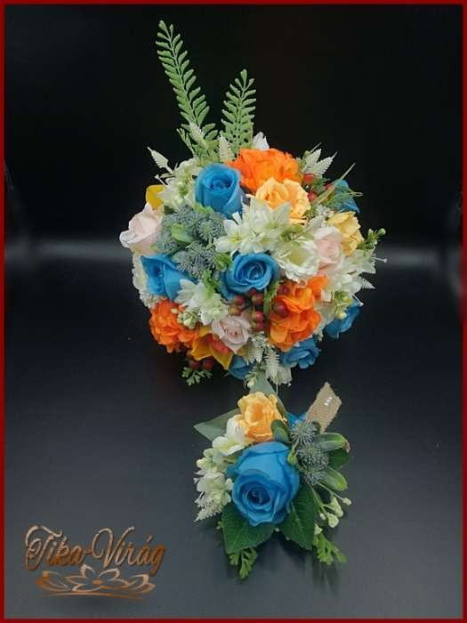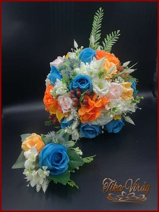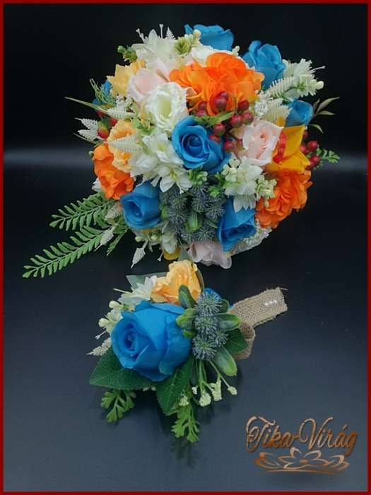 KÉK RÓZSÁS VEGYES CSOKOR + Kitűzővel 112600_1.
