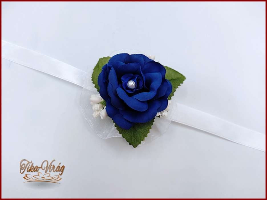 Király-kék rózsás-fehér díszítésű csuklódísz 162702.